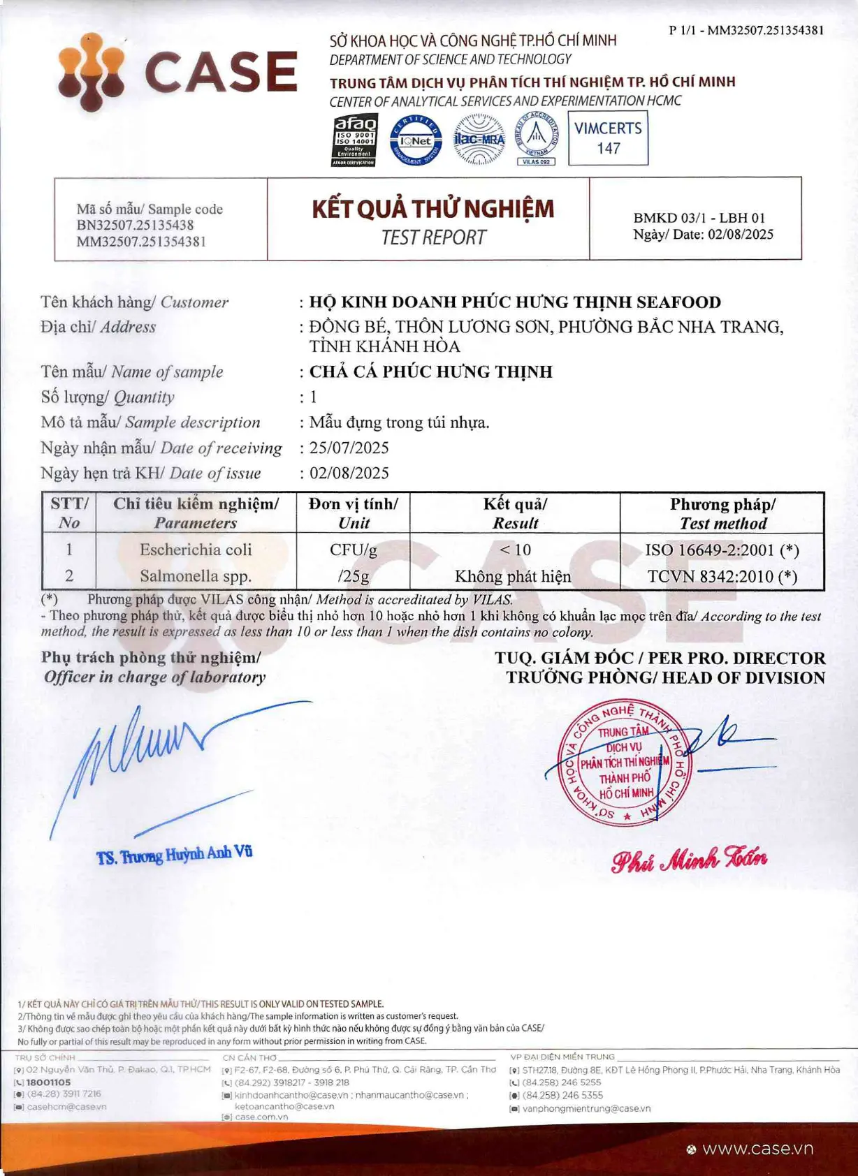 Chả cá Phúc Hưng Thịnh được cấp chứng nhận về kinh doanh, an toàn thực phẩm bởi cơ quan có thẩm quyền